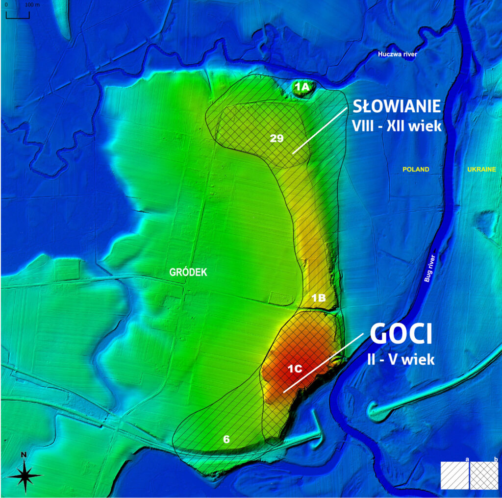 Gródek stan. 1C W południowej części lessowego wyniesienia, łagodnie opadającego w kierunku starorzecza Bugu znajduje się cmentarzysko z okresu rzymskiego, łączone z osadnictwem gockim w Kotlinie Hrubieszowskiej (II-IV wiek). Badane po koniec XX wieku przez Andrzeja Kokowskiego z Instytutu Archeologii UMCS w Lublinie, ponownie stało się obiektem zainteresowań archeologów z hrubieszowskiego muzeum w 2017 roku. Od 2018 roku pracami kieruje Barbara Niezabitowska-Wiśniewska z tego samego ośrodka akademickiego. Do chwili obecnej przebadano już ponad 200 pochówków, a kilkanaście odkrytych w latach 2019-2021 trafiło do analiz genetycznych w ramach międzynarodowego projektu naukowego.