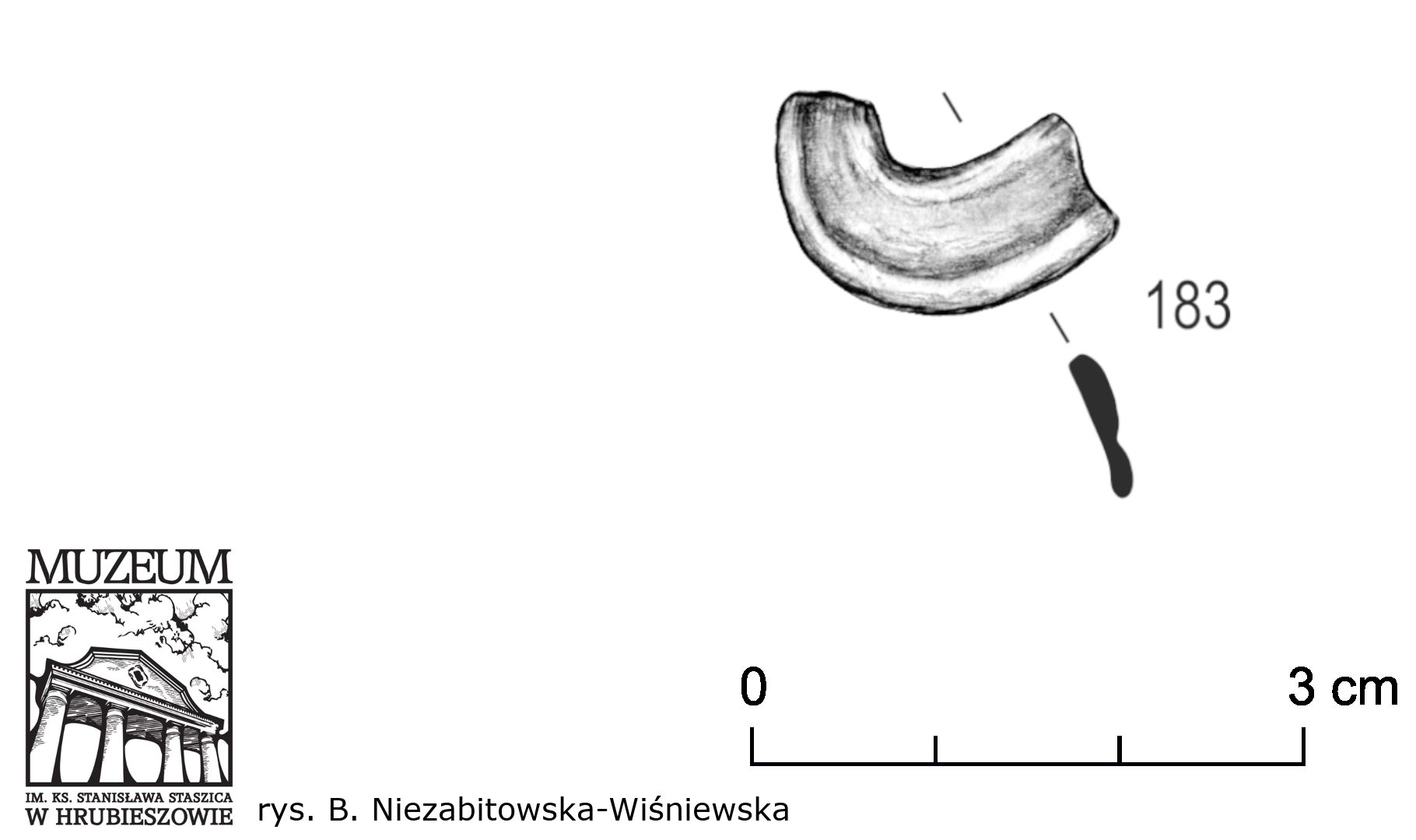 Niezabitowska-Wiśniewska B. 2021, Młodszy okres przedrzymski, rzymski i wędrówek ludów – materiały do dziejów Kotliny Hrubieszowskiej / Late pre-Roman, Roman and Migration periods – materials for the history of the Hrubieszów Basin, in: B. Niezabitowska-Wiśniewska, A. Hyrchała, B. Bartecki (eds.) Odkryte. Odzyskane. Ocalone. Kolekcja zabytków z młodszego okresu przedrzymskiego, okresu rzymskiego i wędrówek ludów ze zbiorów Muzeum im. ks. Stanisława Staszica w Hrubieszowie / Unearthed. Recovered. Saved. A collection of late pre-Roman, Roman and Migration period artefacts from the Rev. Stanisław Staszic Museum in Hrubieszów, Hrubieszów, 84–85, 287–288, 292, tabl. XVIII:183.