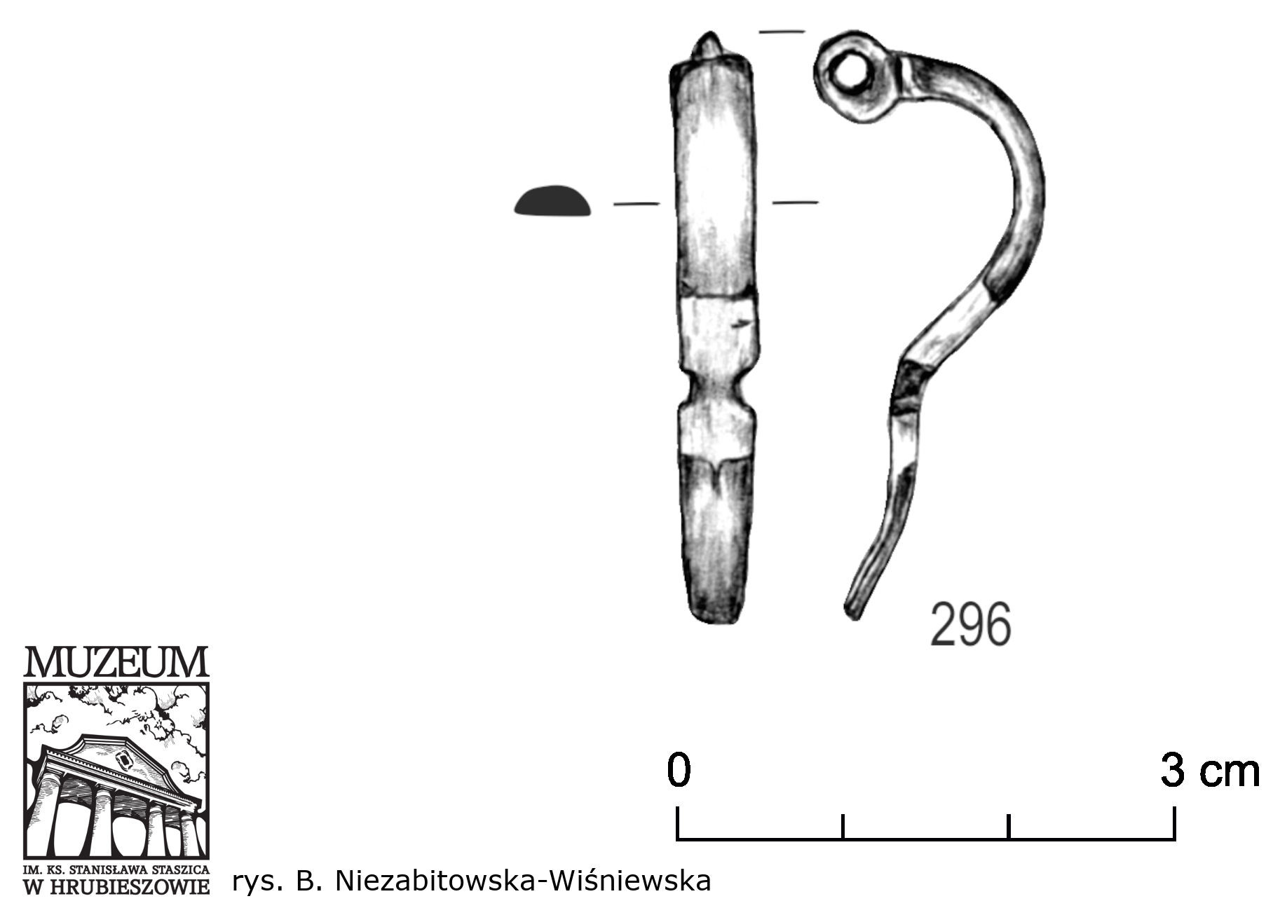 Niezabitowska-Wiśniewska B. 2021, Młodszy okres przedrzymski, rzymski i wędrówek ludów – materiały do dziejów Kotliny Hrubieszowskiej / Late pre-Roman, Roman and Migration periods – materials for the history of the Hrubieszów Basin, in: B. Niezabitowska-Wiśniewska, A. Hyrchała, B. Bartecki (eds.) Odkryte. Odzyskane. Ocalone. Kolekcja zabytków z młodszego okresu przedrzymskiego, okresu rzymskiego i wędrówek ludów ze zbiorów Muzeum im. ks. Stanisława Staszica w Hrubieszowie / Unearthed. Recovered. Saved. A collection of late pre-Roman, Roman and Migration period artefacts from the Rev. Stanisław Staszic Museum in Hrubieszów, Hrubieszów, 124–125, 221, 248, tabl. XXVIII:296.