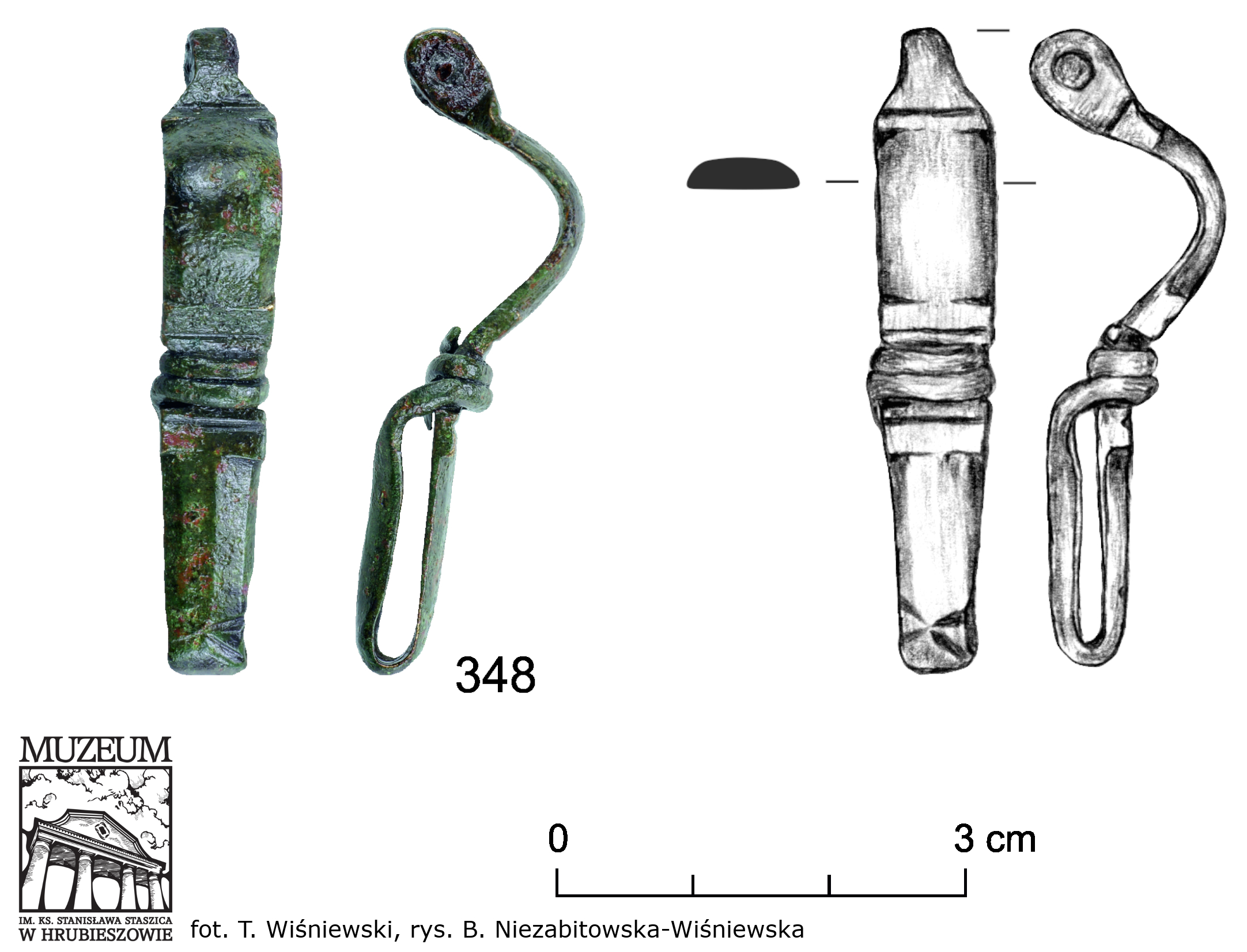 Niezabitowska-Wiśniewska B. 2021, Młodszy okres przedrzymski, rzymski i wędrówek ludów – materiały do dziejów Kotliny Hrubieszowskiej / Late pre-Roman, Roman and Migration periods – materials for the history of the Hrubieszów Basin, in: B. Niezabitowska-Wiśniewska, A. Hyrchała, B. Bartecki (eds.) Odkryte. Odzyskane. Ocalone. Kolekcja zabytków z młodszego okresu przedrzymskiego, okresu rzymskiego i wędrówek ludów ze zbiorów Muzeum im. ks. Stanisława Staszica w Hrubieszowie / Unearthed. Recovered. Saved. A collection of late pre-Roman, Roman and Migration period artefacts from the Rev. Stanisław Staszic Museum in Hrubieszów, Hrubieszów, 142–143, 221, 248, ryc. 26:348, tabl. XXXI:348.