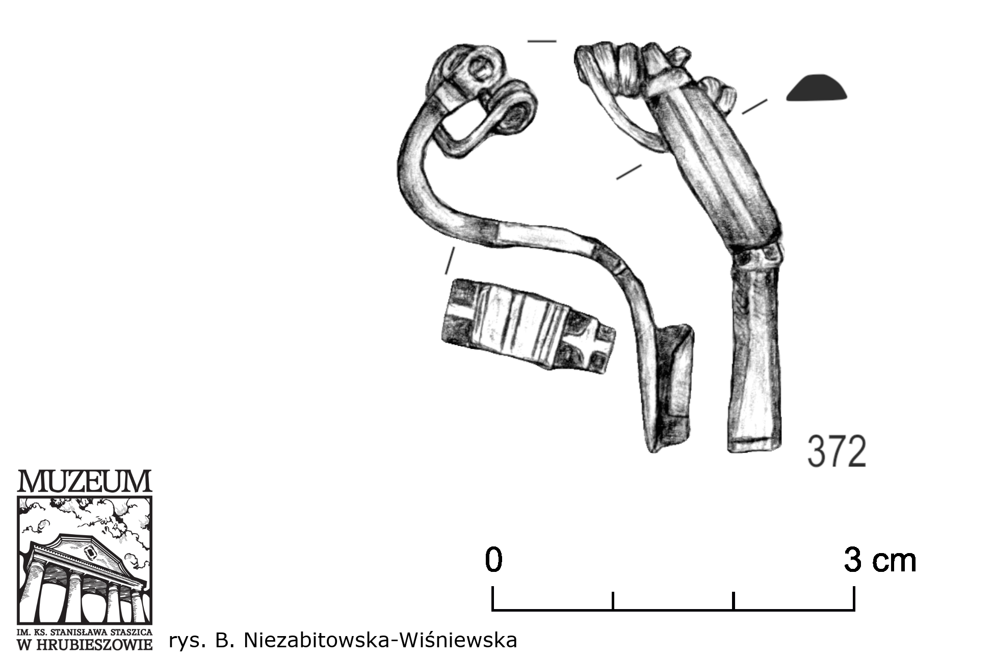 Niezabitowska-Wiśniewska B. 2021, Młodszy okres przedrzymski, rzymski i wędrówek ludów – materiały do dziejów Kotliny Hrubieszowskiej / Late pre-Roman, Roman and Migration periods – materials for the history of the Hrubieszów Basin, in: B. Niezabitowska-Wiśniewska, A. Hyrchała, B. Bartecki (eds.) Odkryte. Odzyskane. Ocalone. Kolekcja zabytków z młodszego okresu przedrzymskiego, okresu rzymskiego i wędrówek ludów ze zbiorów Muzeum im. ks. Stanisława Staszica w Hrubieszowie / Unearthed. Recovered. Saved. A collection of late pre-Roman, Roman and Migration period artefacts from the Rev. Stanisław Staszic Museum in Hrubieszów, Hrubieszów, 150–151, 223, 280–281, ryc. 54:372; tabl. XXXIII:372.