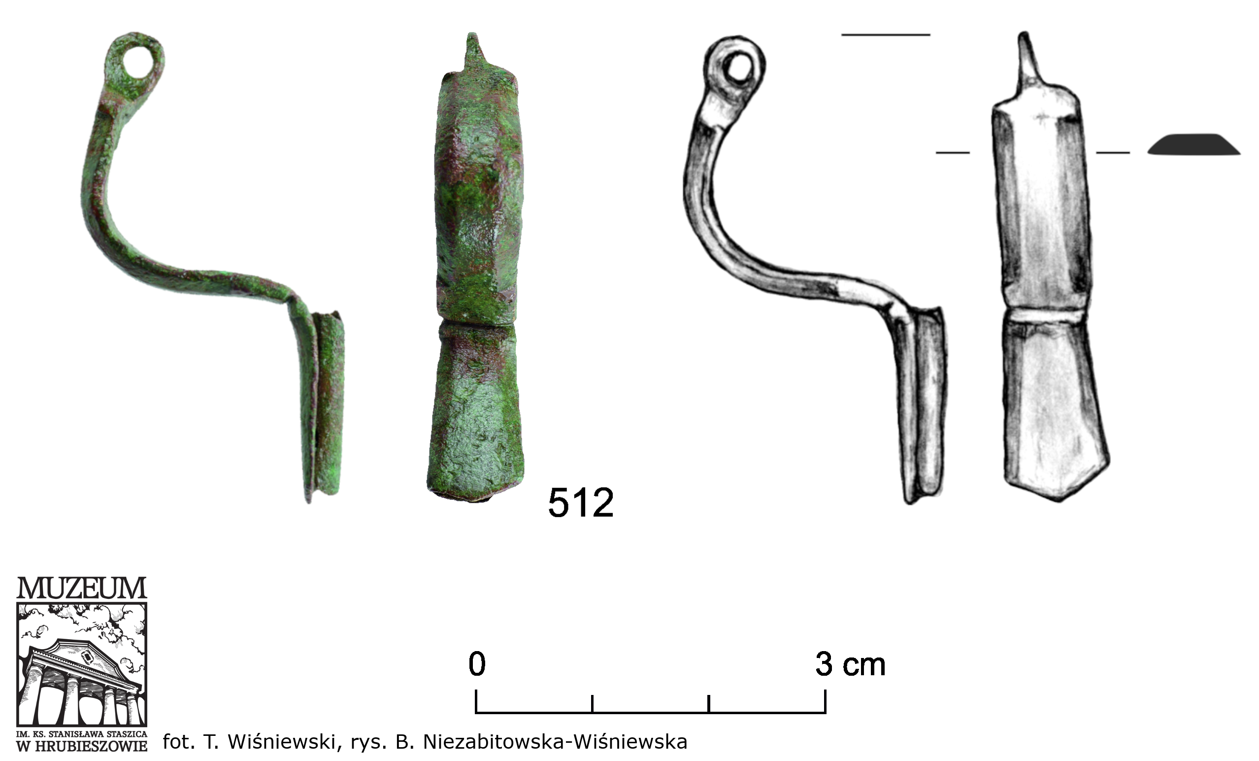 Niezabitowska-Wiśniewska B. 2021, Młodszy okres przedrzymski, rzymski i wędrówek ludów – materiały do dziejów Kotliny Hrubieszowskiej / Late pre-Roman, Roman and Migration periods – materials for the history of the Hrubieszów Basin, in: B. Niezabitowska-Wiśniewska, A. Hyrchała, B. Bartecki (eds.) Odkryte. Odzyskane. Ocalone. Kolekcja zabytków z młodszego okresu przedrzymskiego, okresu rzymskiego i wędrówek ludów ze zbiorów Muzeum im. ks. Stanisława Staszica w Hrubieszowie / Unearthed. Recovered. Saved. A collection of late pre-Roman, Roman and Migration period artefacts from the Rev. Stanisław Staszic Museum in Hrubieszów, Hrubieszów, 202–203, 223, 278–281, ryc. 53:512, tabl. XLVII:512.
