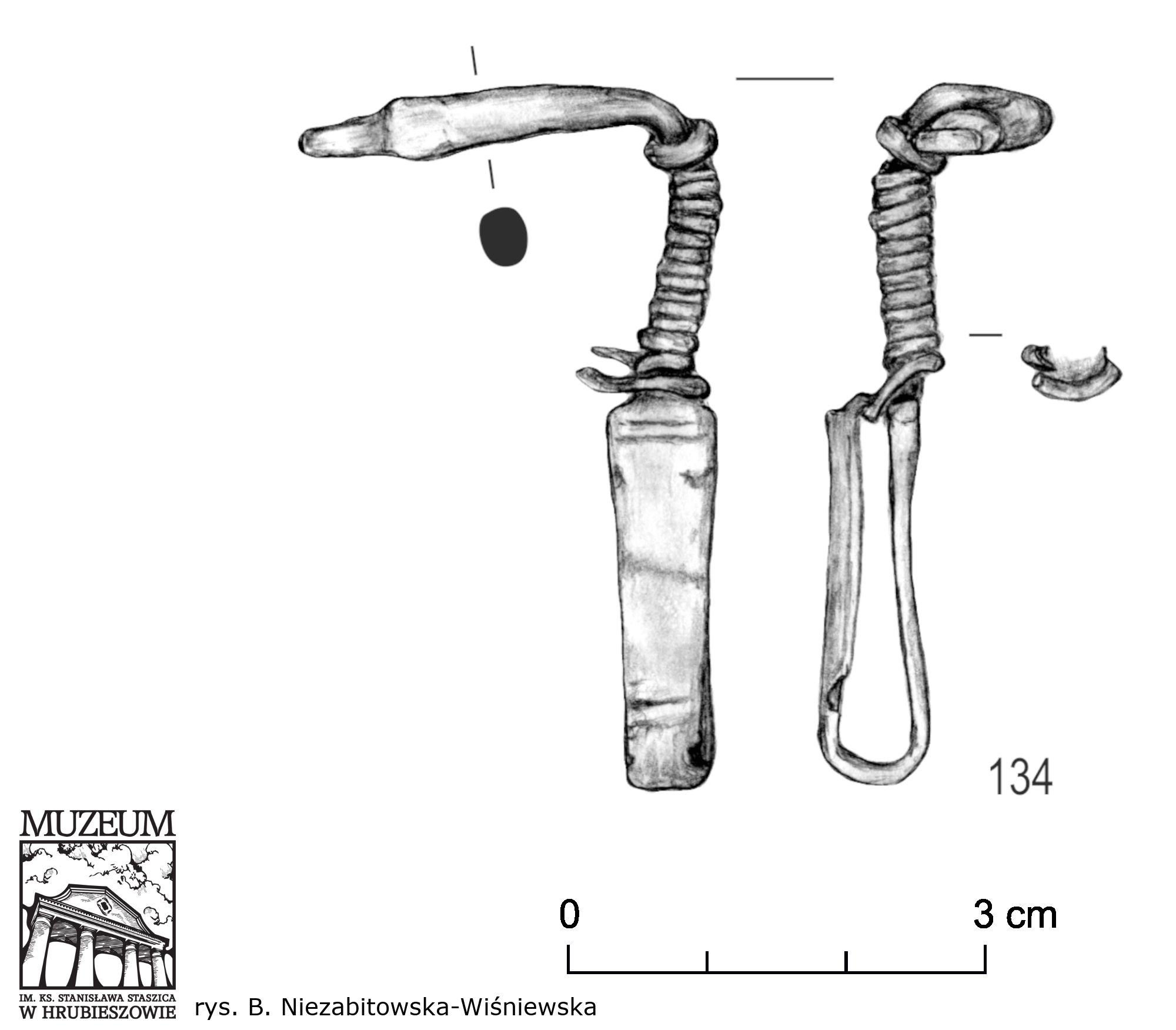 Niezabitowska-Wiśniewska B. 2021, Młodszy okres przedrzymski, rzymski i wędrówek ludów – materiały do dziejów Kotliny Hrubieszowskiej / Late pre-Roman, Roman and Migration periods – materials for the history of the Hrubieszów Basin, in: B. Niezabitowska-Wiśniewska, A. Hyrchała, B. Bartecki (eds.) Odkryte. Odzyskane. Ocalone. Kolekcja zabytków z młodszego okresu przedrzymskiego, okresu rzymskiego i wędrówek ludów ze zbiorów Muzeum im. ks. Stanisława Staszica w Hrubieszowie / Unearthed. Recovered. Saved. A collection of late pre-Roman, Roman and Migration period artefacts from the Rev. Stanisław Staszic Museum in Hrubieszów, Hrubieszów, 74–75, 222, 264–265, ryc. 38:134, tabl. XIV:134.