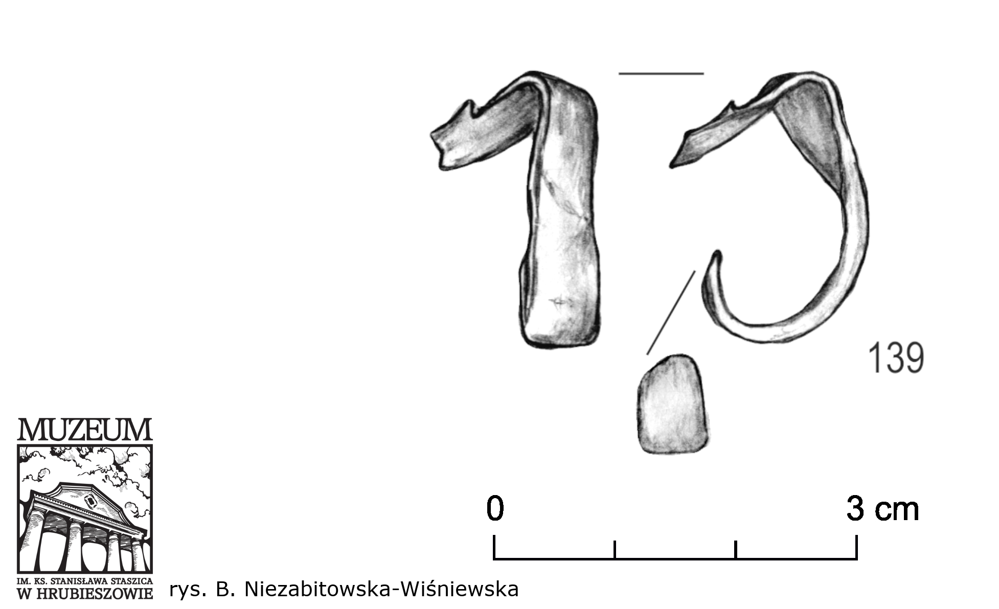 Niezabitowska-Wiśniewska B. 2021, Młodszy okres przedrzymski, rzymski i wędrówek ludów – materiały do dziejów Kotliny Hrubieszowskiej / Late pre-Roman, Roman and Migration periods – materials for the history of the Hrubieszów Basin, in: B. Niezabitowska-Wiśniewska, A. Hyrchała, B. Bartecki (eds.) Odkryte. Odzyskane. Ocalone. Kolekcja zabytków z młodszego okresu przedrzymskiego, okresu rzymskiego i wędrówek ludów ze zbiorów Muzeum im. ks. Stanisława Staszica w Hrubieszowie / Unearthed. Recovered. Saved. A collection of late pre-Roman, Roman and Migration period artefacts from the Rev. Stanisław Staszic Museum in Hrubieszów, Hrubieszów, 74–75, 222, tabl. XV:139.