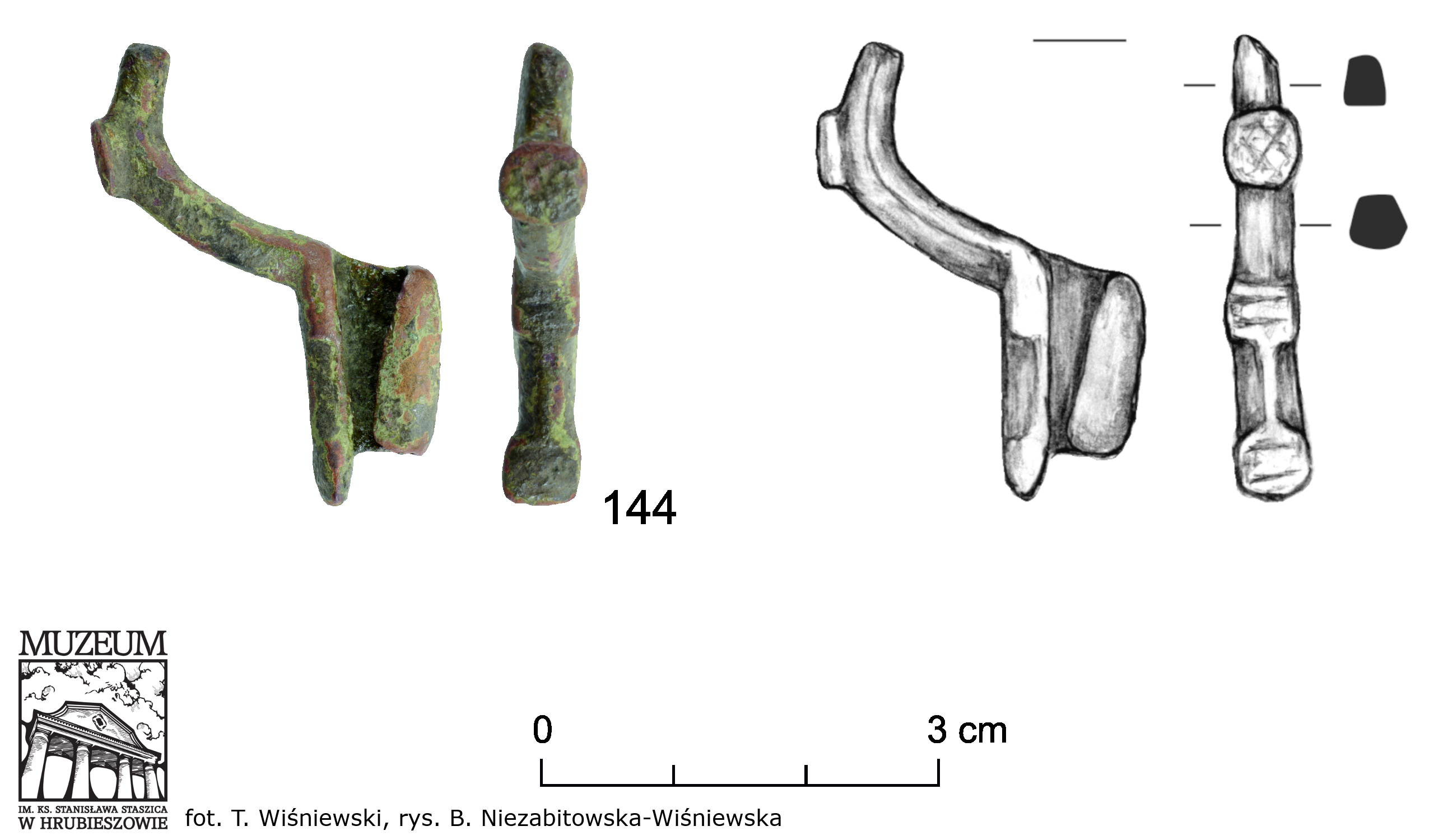 Niezabitowska-Wiśniewska B. 2021, Młodszy okres przedrzymski, rzymski i wędrówek ludów – materiały do dziejów Kotliny Hrubieszowskiej / Late pre-Roman, Roman and Migration periods – materials for the history of the Hrubieszów Basin, in: B. Niezabitowska-Wiśniewska, A. Hyrchała, B. Bartecki (eds.) Odkryte. Odzyskane. Ocalone. Kolekcja zabytków z młodszego okresu przedrzymskiego, okresu rzymskiego i wędrówek ludów ze zbiorów Muzeum im. ks. Stanisława Staszica w Hrubieszowie / Unearthed. Recovered. Saved. A collection of late pre-Roman, Roman and Migration period artefacts from the Rev. Stanisław Staszic Museum in Hrubieszów, Hrubieszów, 76–77, 222, 275–276, ryc. 49:144, tabl. XV:144.
