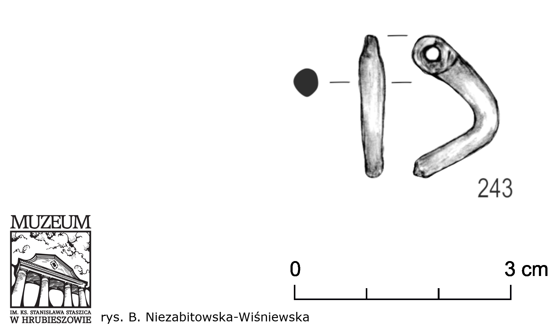 Niezabitowska-Wiśniewska B. 2021, Młodszy okres przedrzymski, rzymski i wędrówek ludów – materiały do dziejów Kotliny Hrubieszowskiej / Late pre-Roman, Roman and Migration periods – materials for the history of the Hrubieszów Basin, in: B. Niezabitowska-Wiśniewska, A. Hyrchała, B. Bartecki (eds.) Odkryte. Odzyskane. Ocalone. Kolekcja zabytków z młodszego okresu przedrzymskiego, okresu rzymskiego i wędrówek ludów ze zbiorów Muzeum im. ks. Stanisława Staszica w Hrubieszowie / Unearthed. Recovered. Saved. A collection of late pre-Roman, Roman and Migration period artefacts from the Rev. Stanisław Staszic Museum in Hrubieszów, Hrubieszów, 106–107, 221, 248, 250–251, 253, tabl. XXIV:243.