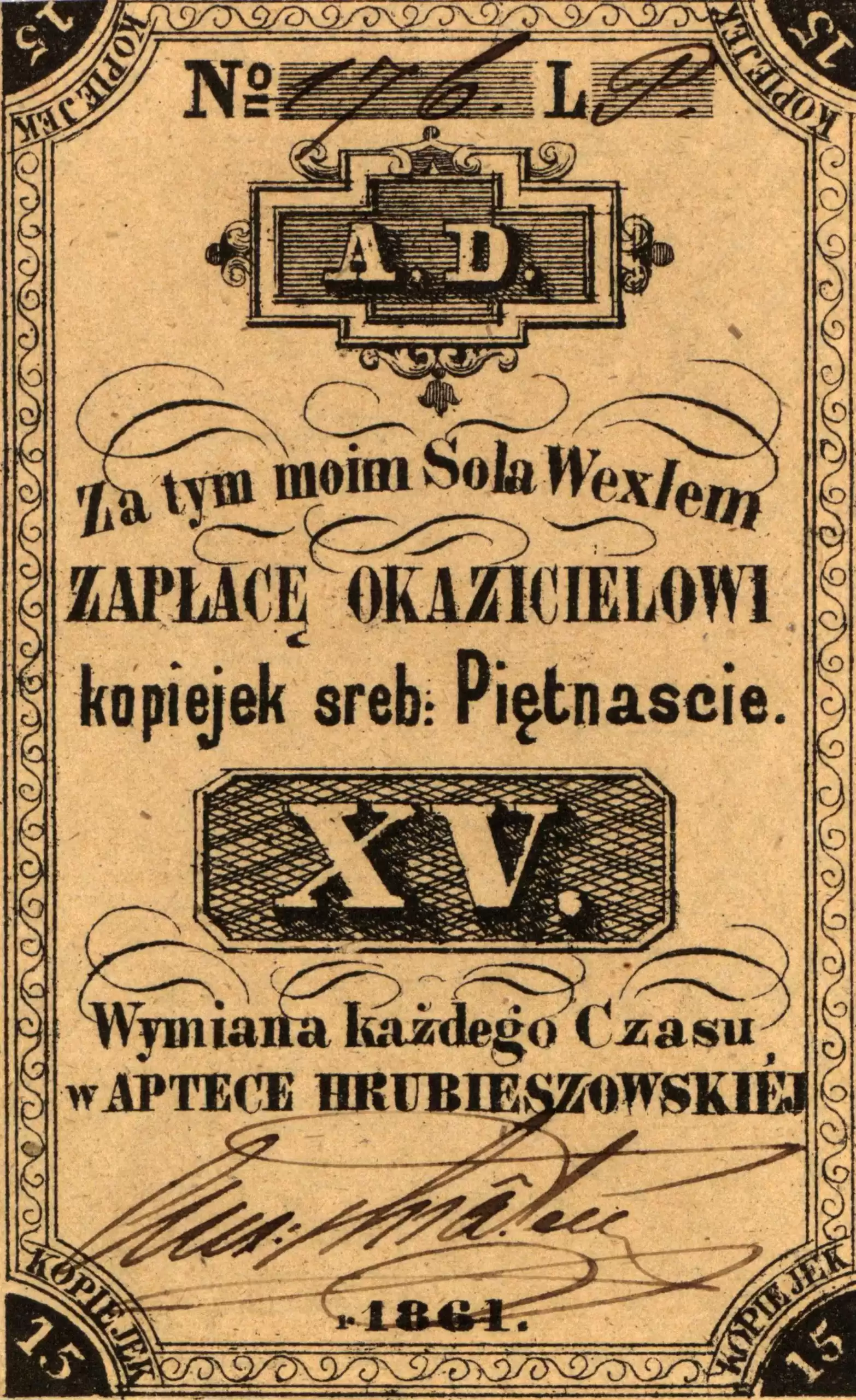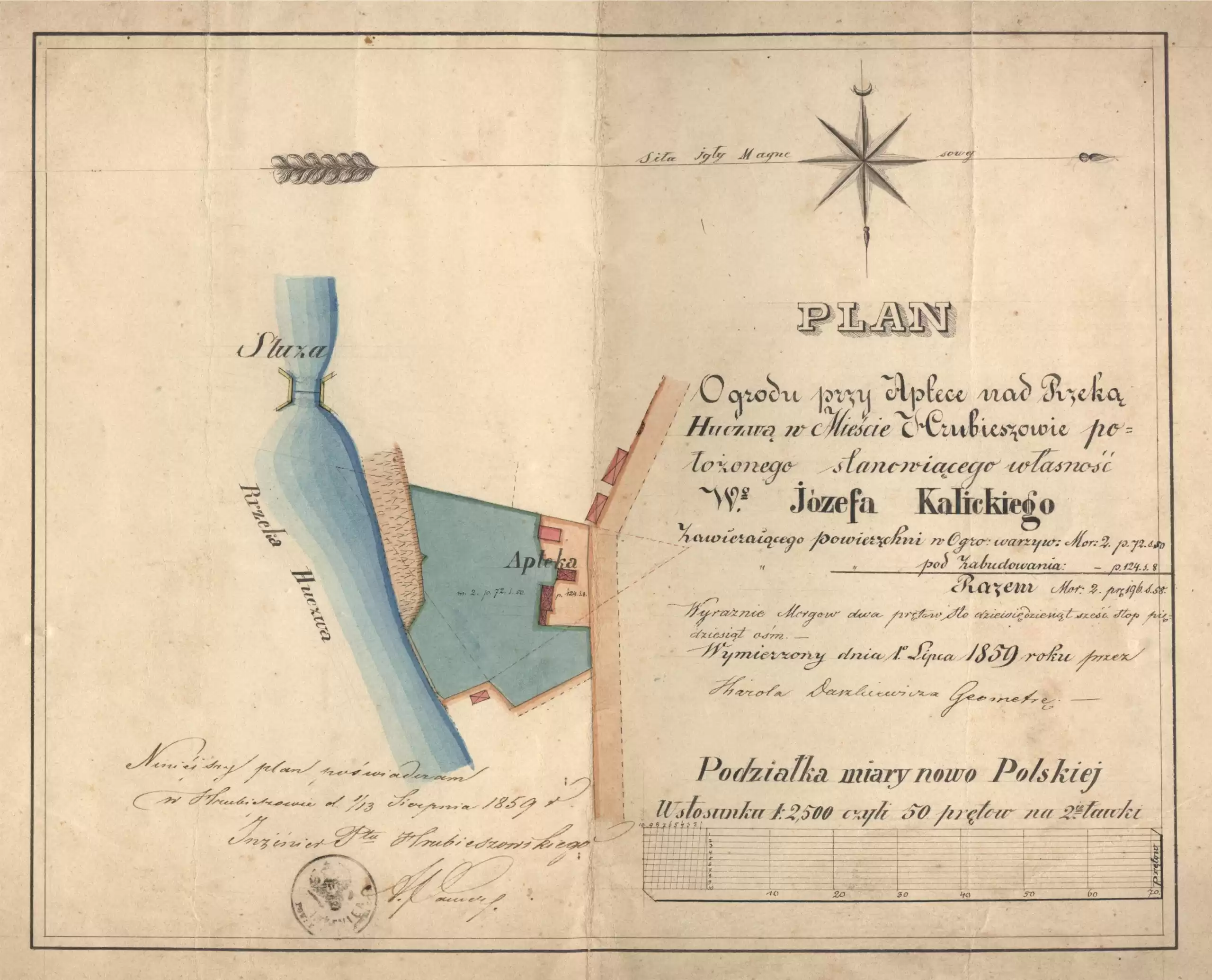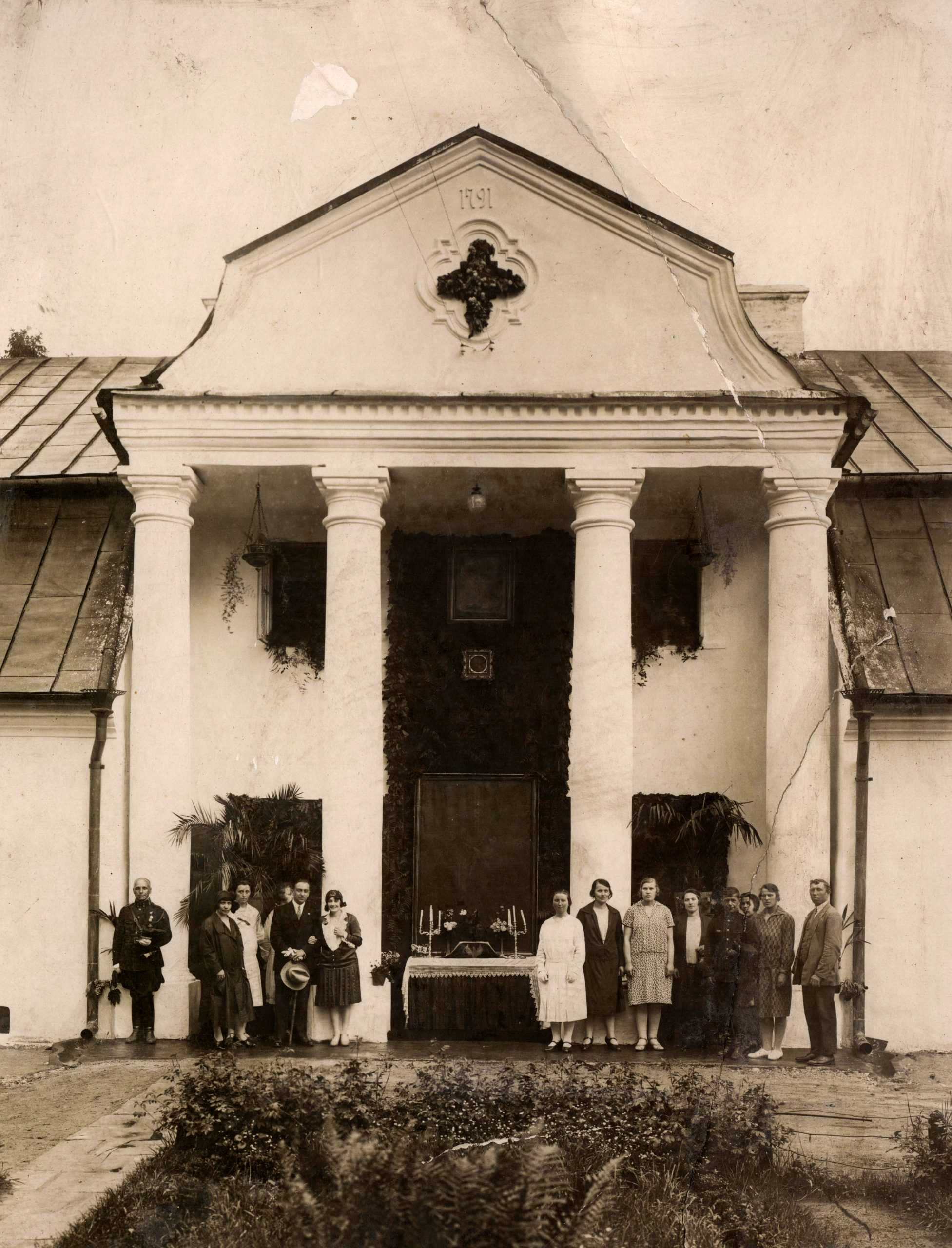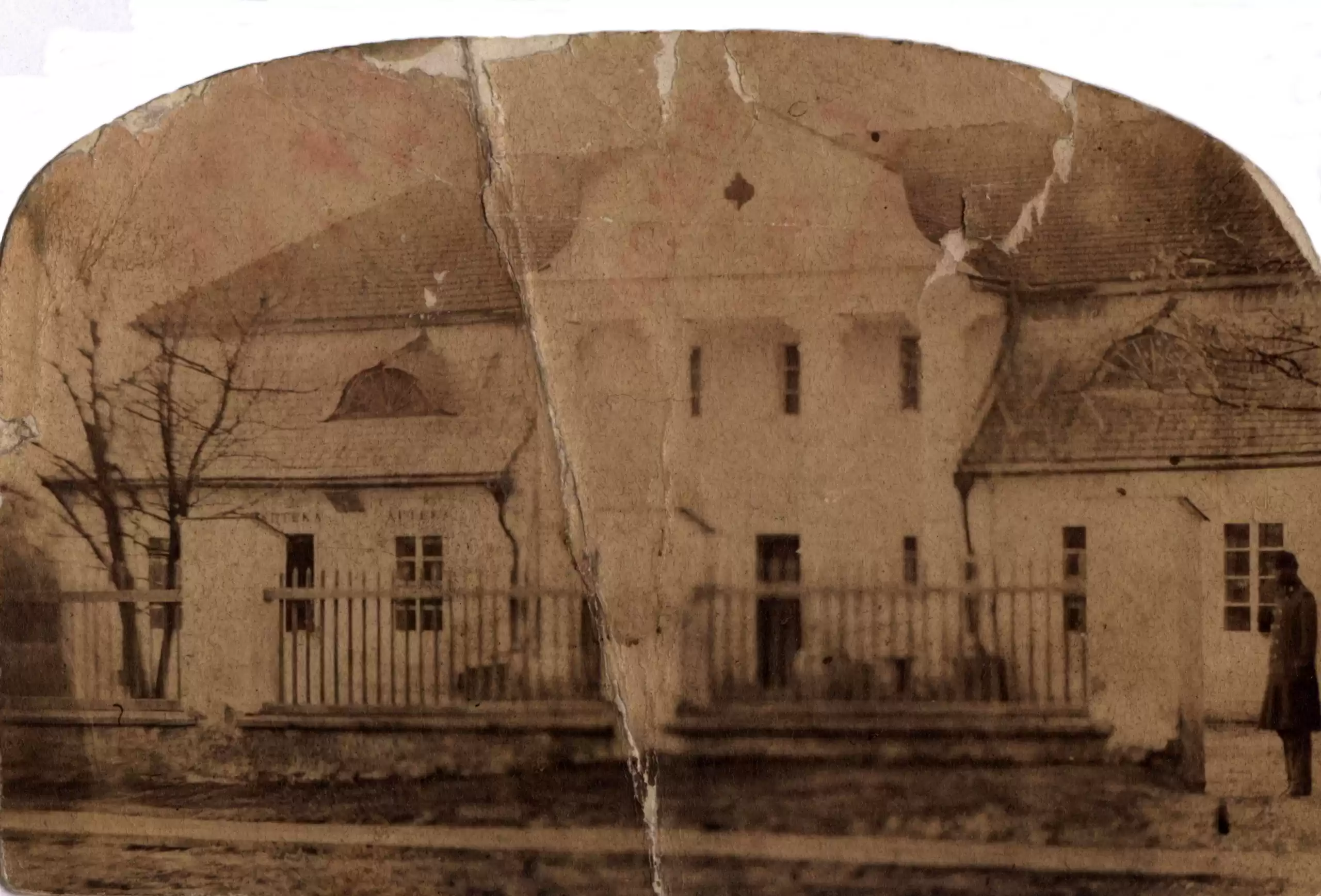 Najstarsze ujęcie dworu z przełomu XIX/XX w. Rodzina du Chateau przed wejściem do dworu, święto Zesłania Ducha Świętego, lata 30. XX w. Zegar słoneczny w ogrodzie przy dworze, początek I poł. XX w. Plan ogrodu przy aptece z 1859 r. Widok na budynek główny, pocztówka z okresu II wojny światowej. Sola weksel apteki Aleksandra du Chateau, opiewający na 15 srebrnych kopiejek z 1861 r.